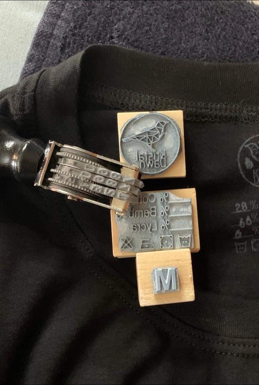 The 3 band stamp is a standard number selector stamp. It contains 3 bands that allow you to select any configuration of numbers from 0-9 and a dash. The text on the band stamp is approximately 4mm high and is best suited for use with content or compliance stamps that have an empty space for the content percentage (e.g. % Cotton).